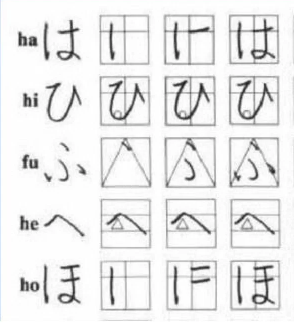 は行 は(ha) ひ(hi) ふ(fu) へ(he) ほ(ho)
